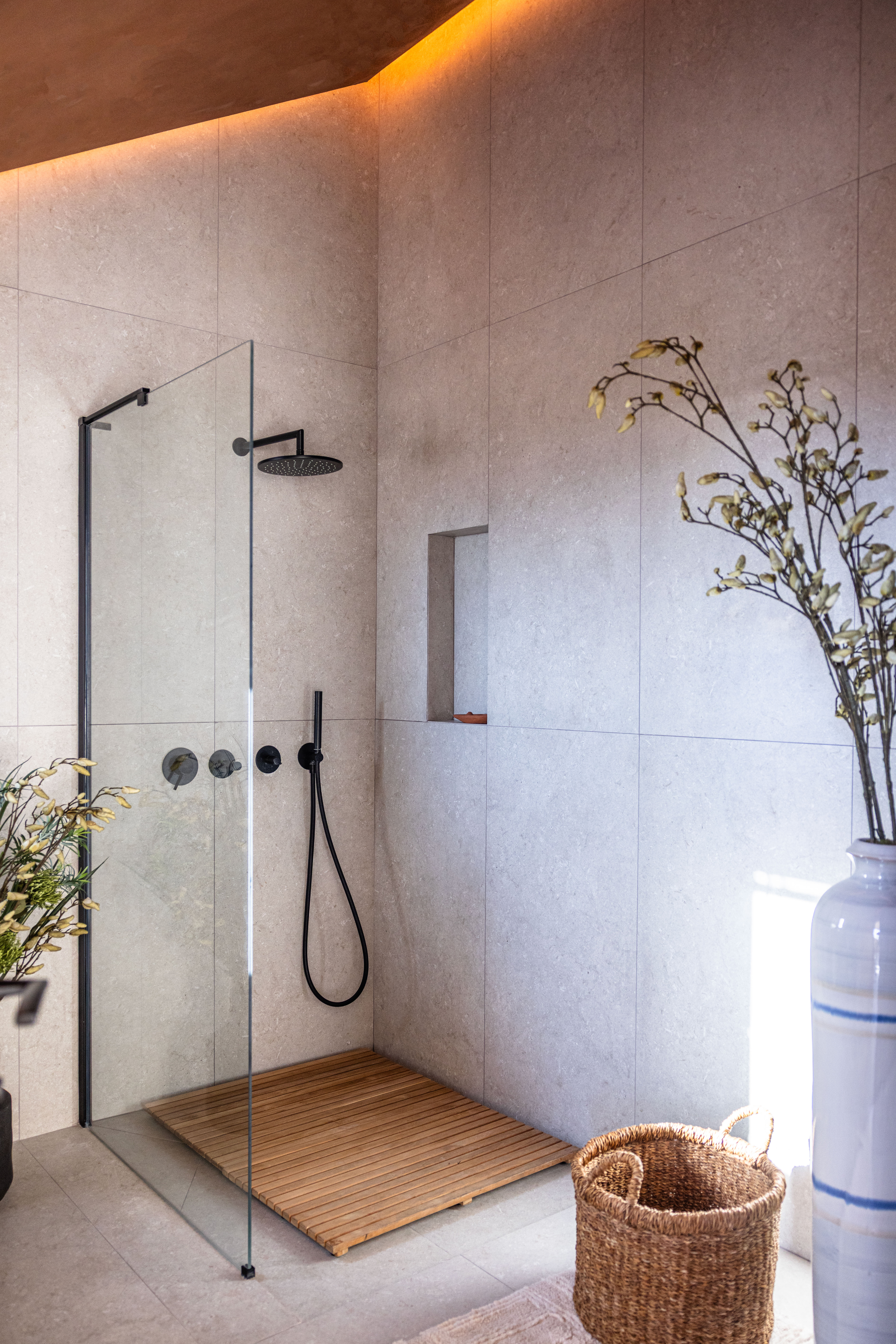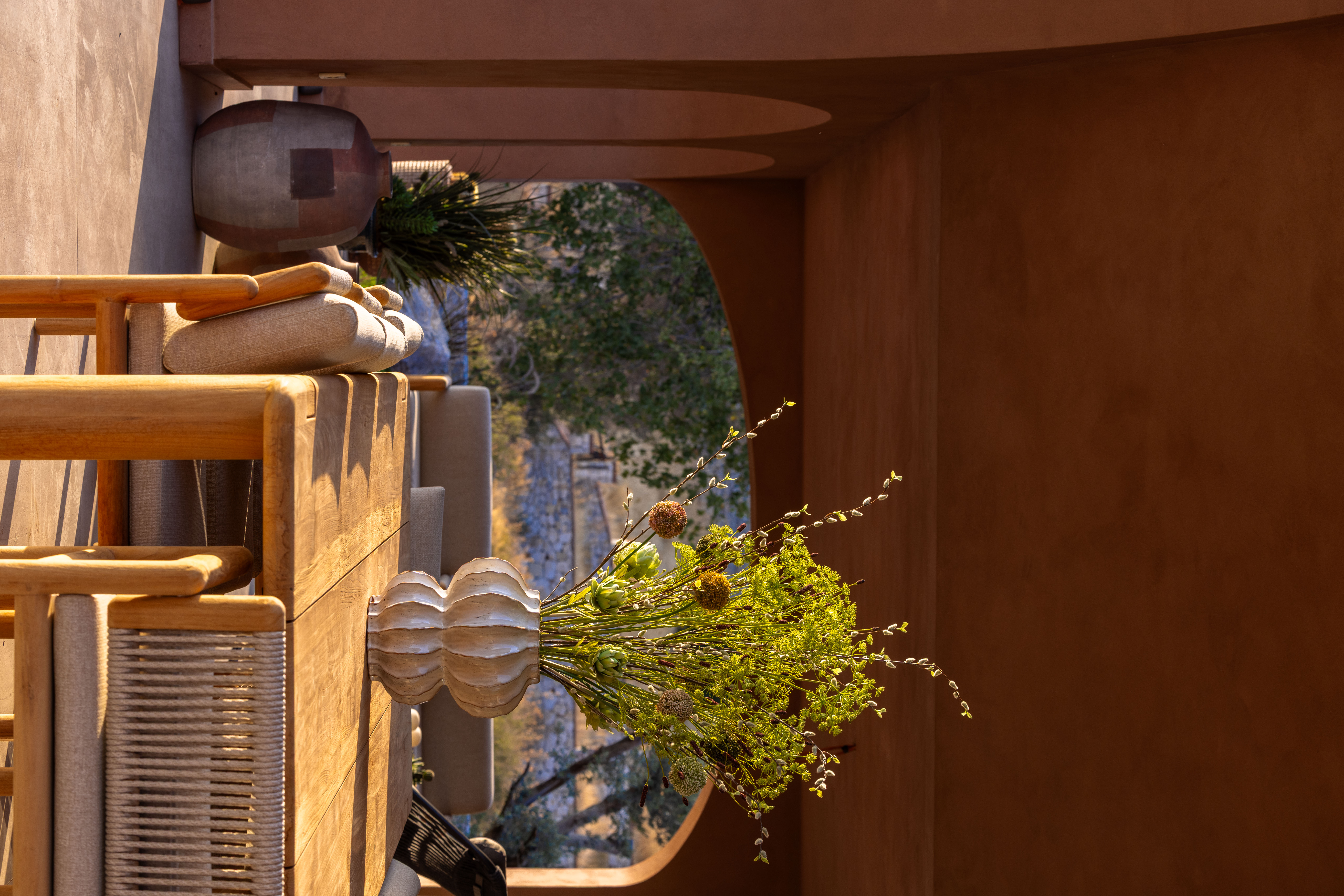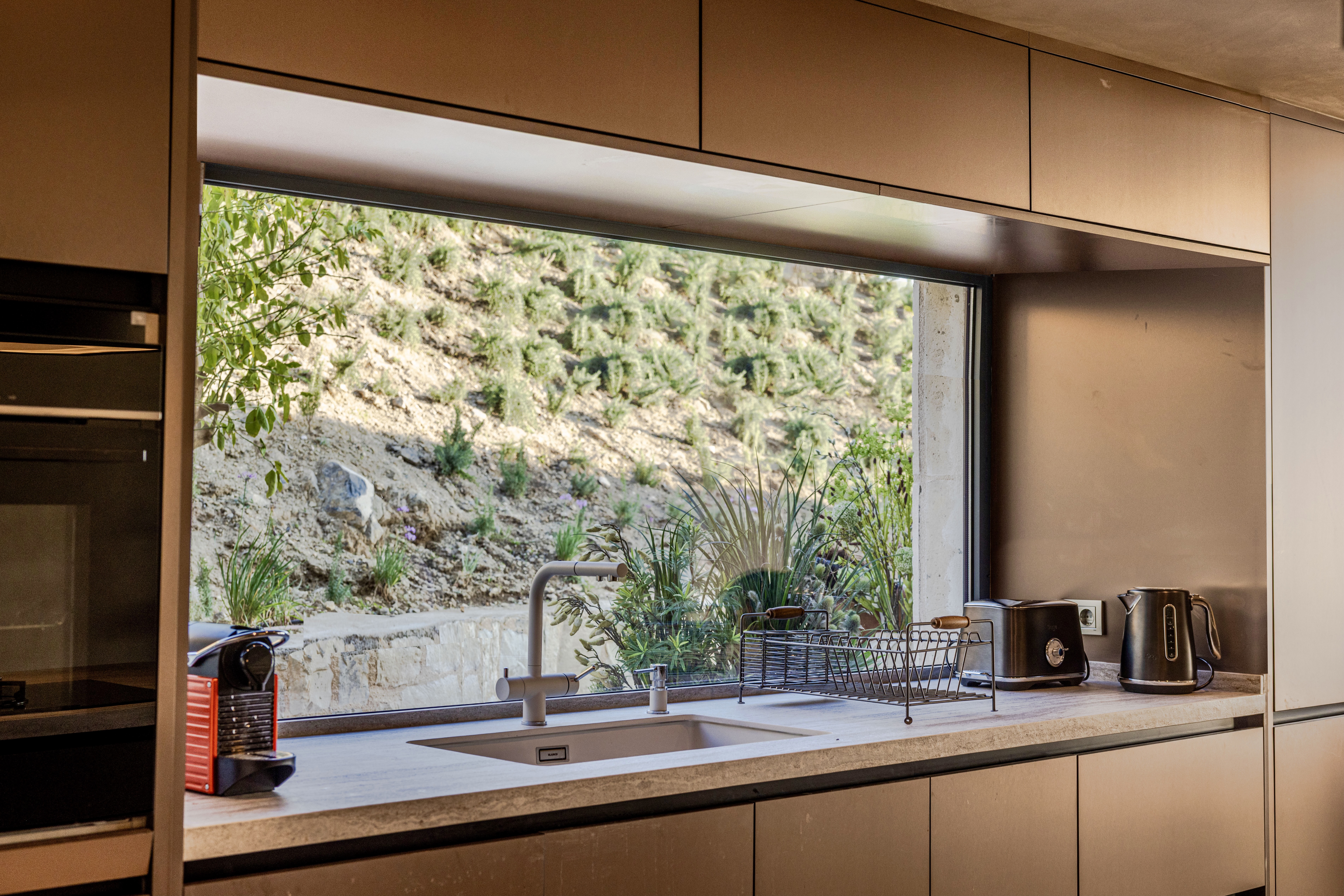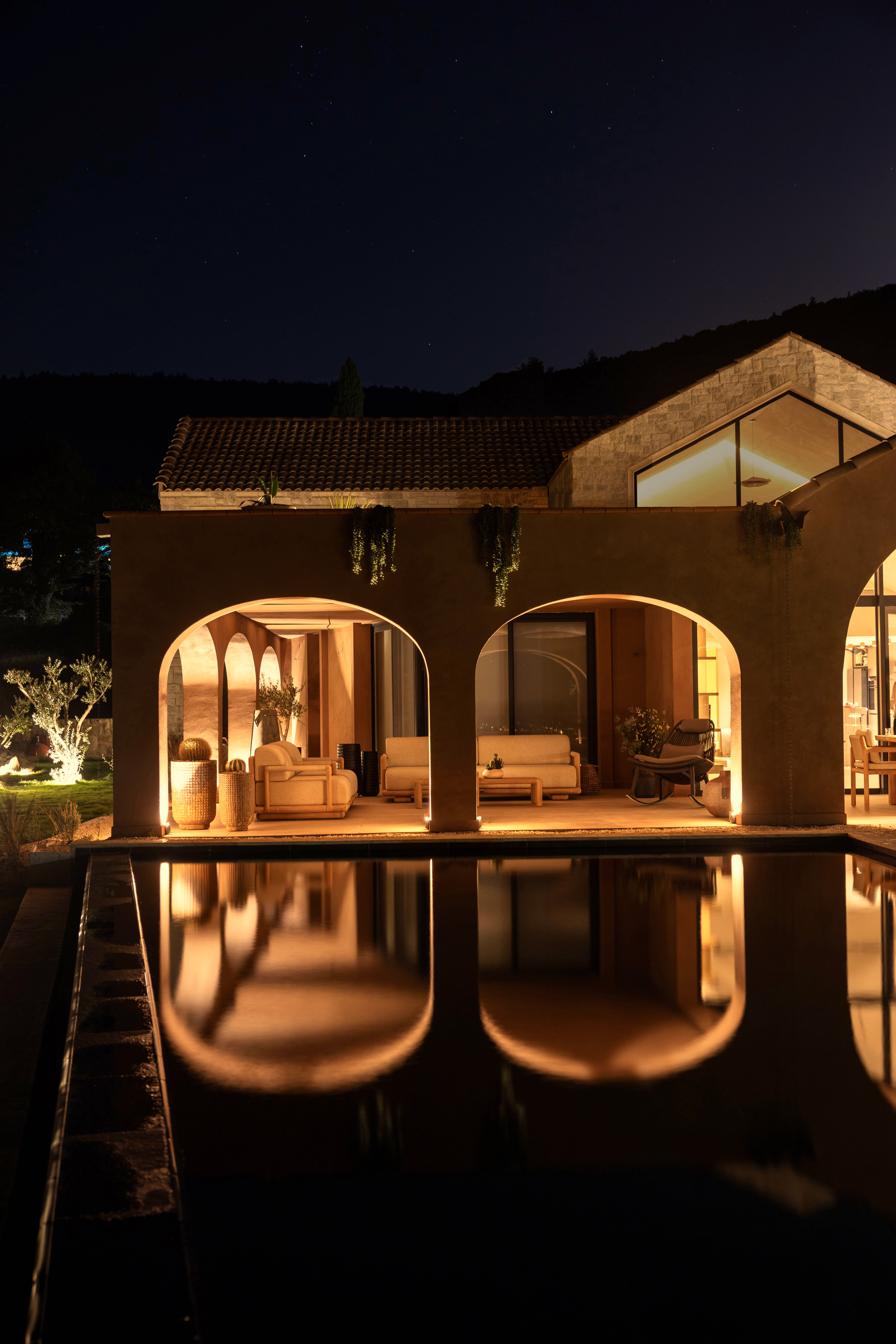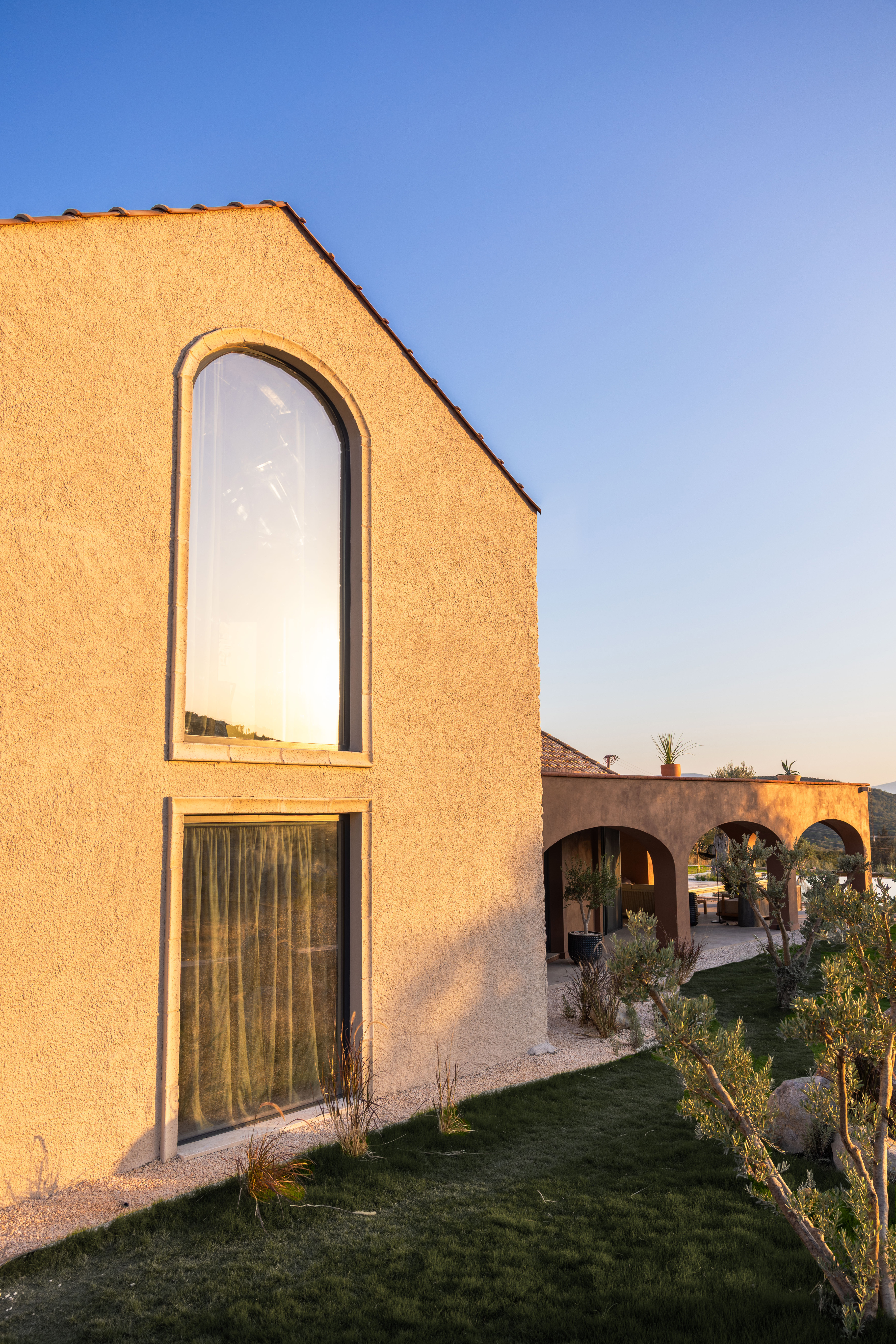 As part of the project, the client requested a low- maintenance landscape design with minimal irrigation, due to the region’s hot and dry summer climate. The planting palette includes drought-tolerant species such as cacti, lavender, rosemary, agave, and native grasses, chosen for their resilience and ability to thrive in the local environment.